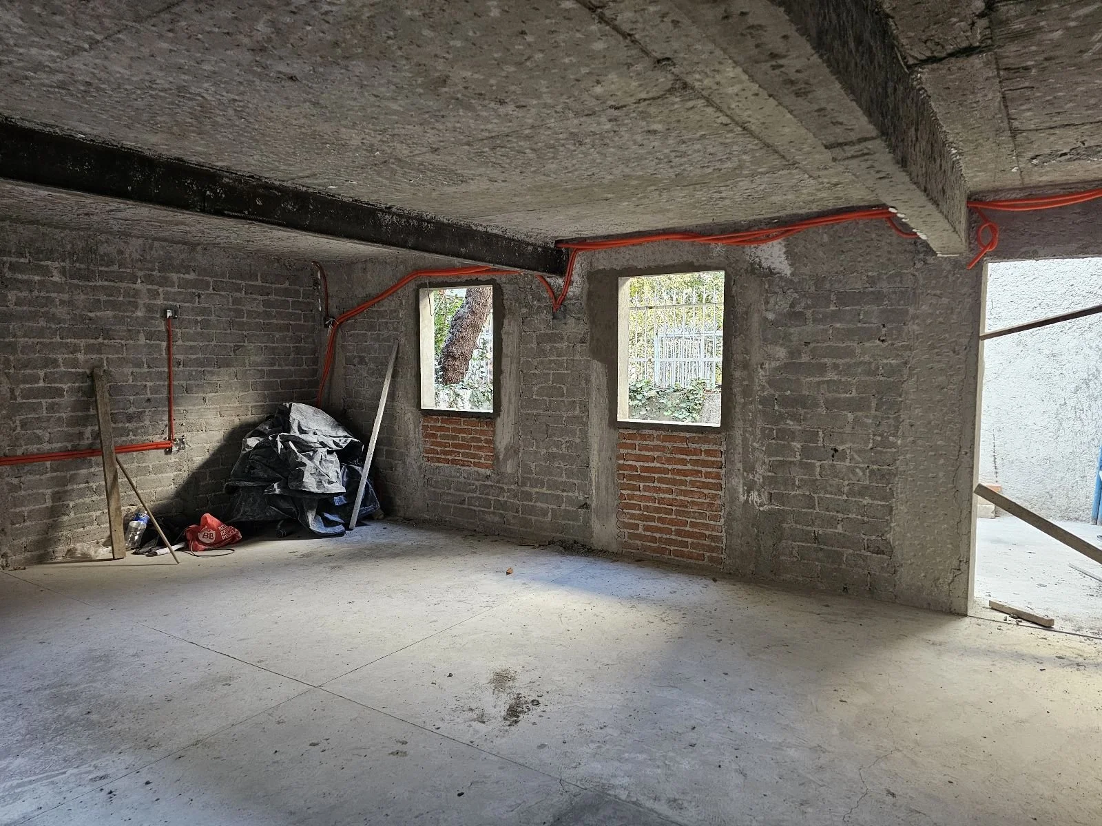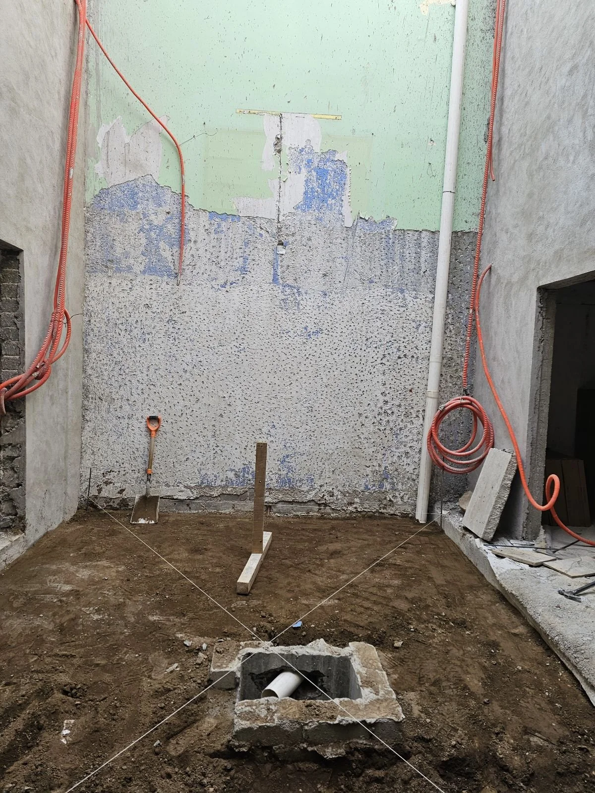 Demolición de rampa exterior para rampa de estacionamiento con piedra volcánica.