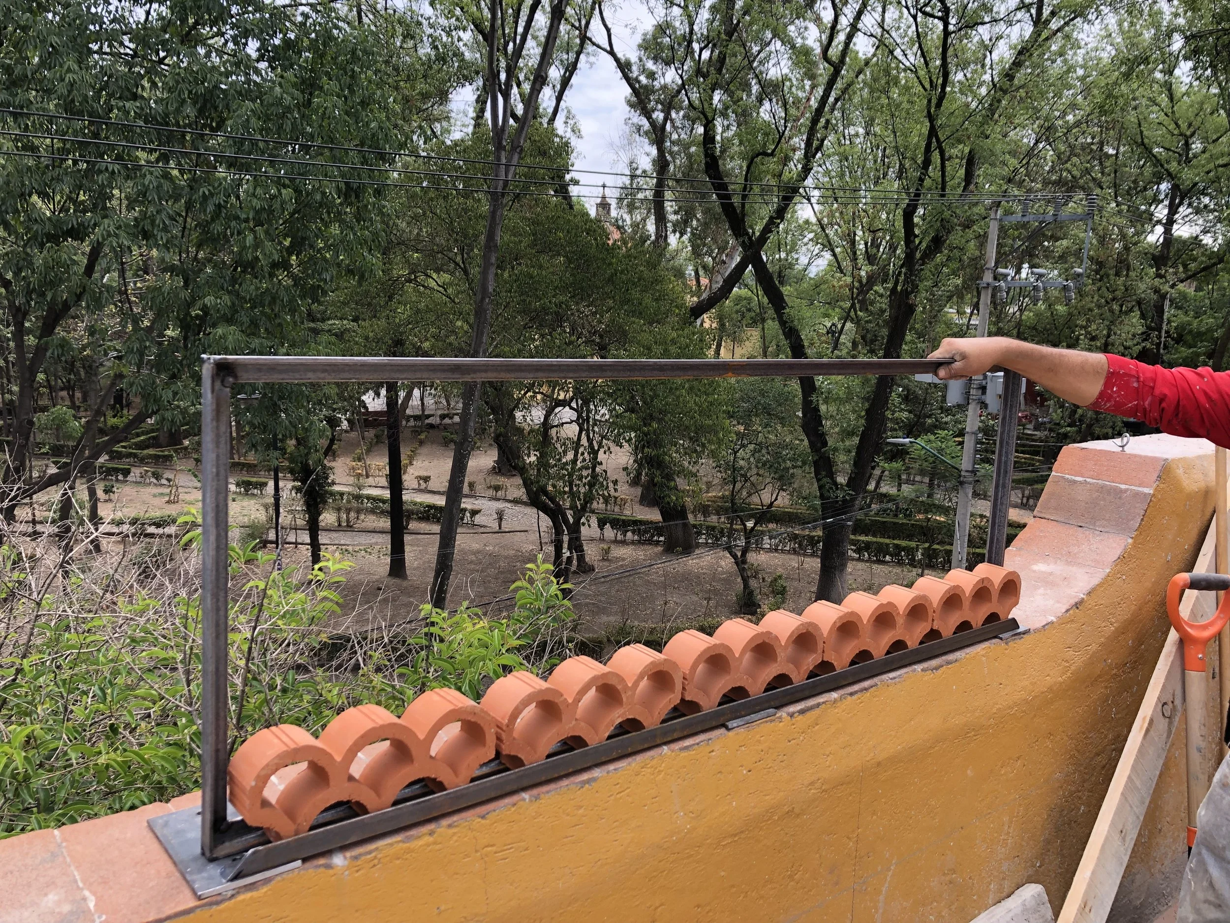 Realizamos preparaciones para recibir celosía, y se comenzó el armado de marcos de acero y la aplicación de primario a los elementos de acero.