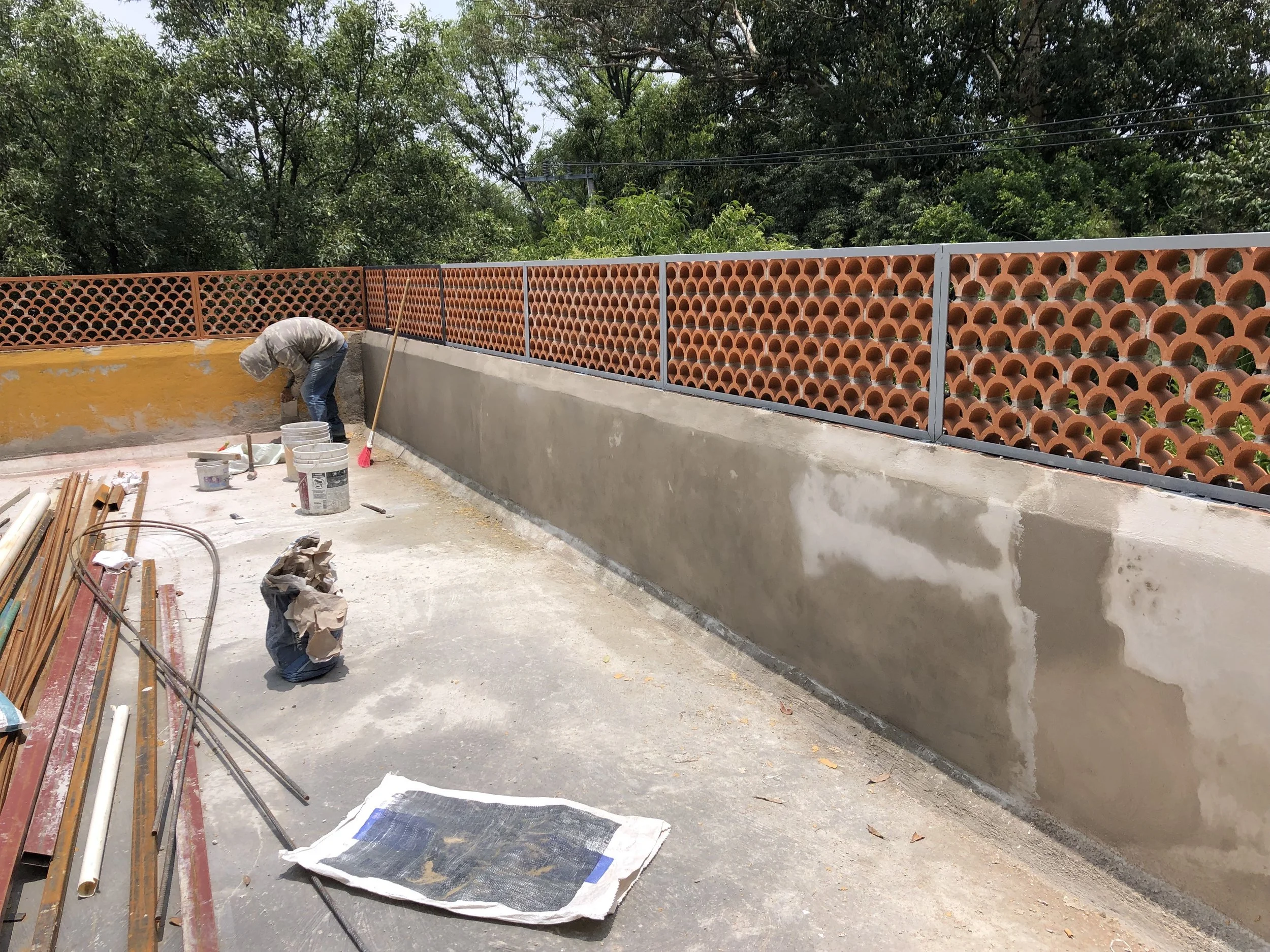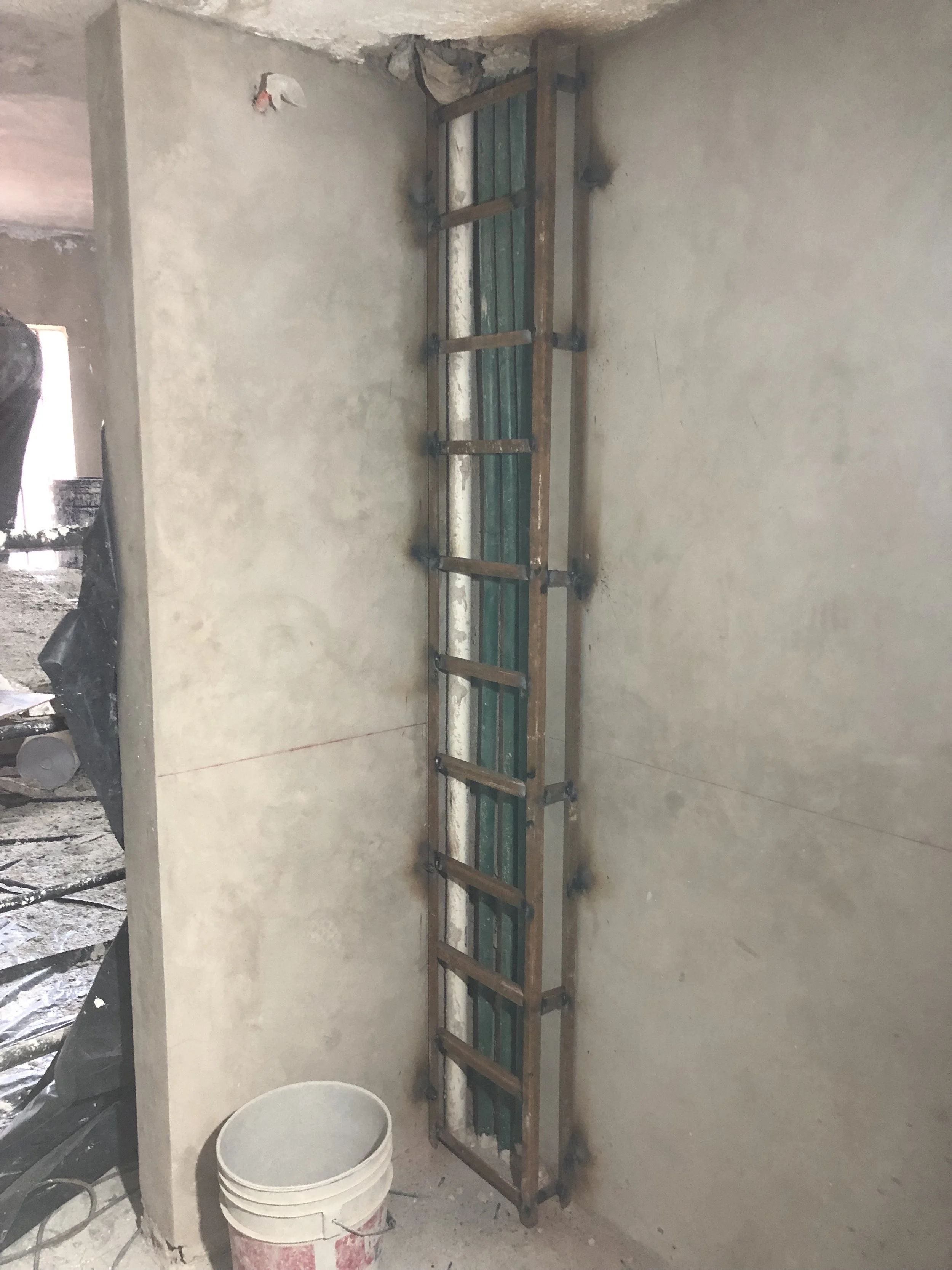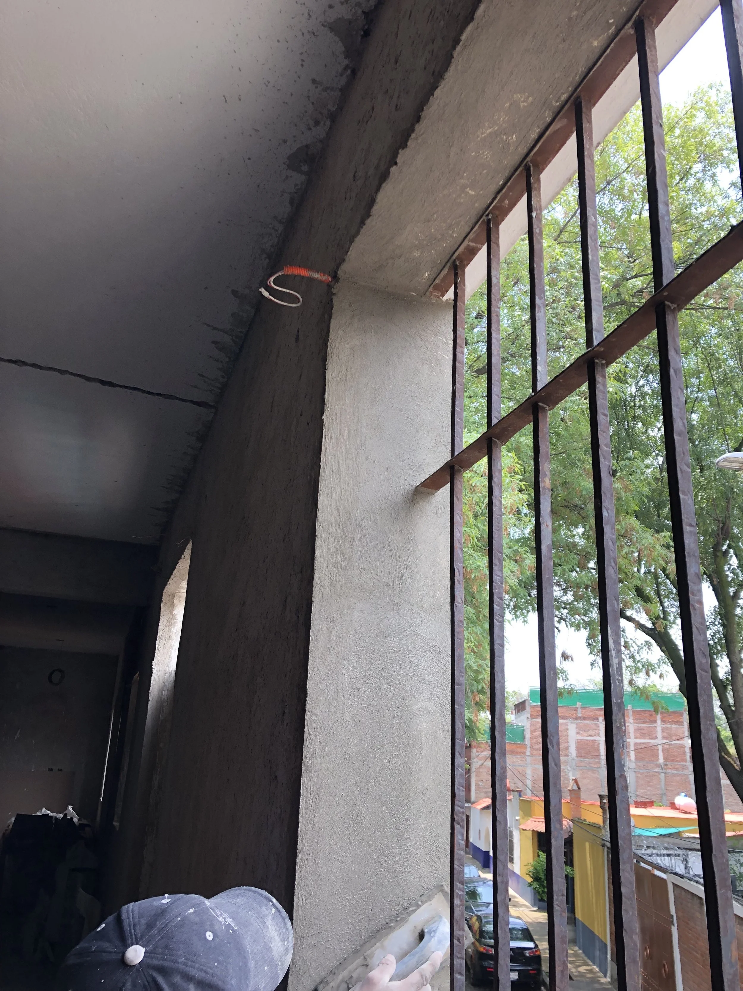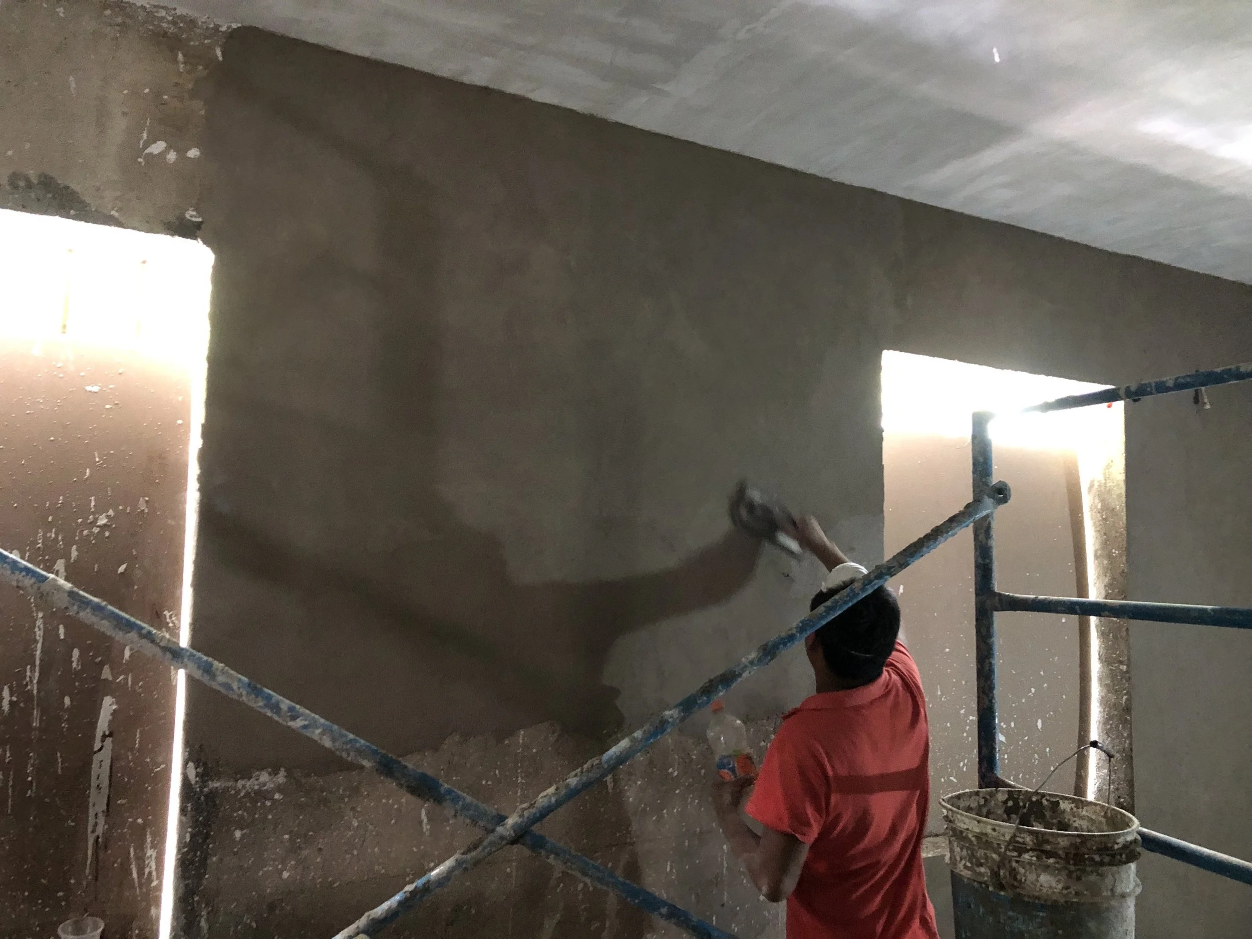 Realizamos afinado en muro de fachada interno en zona de family room.