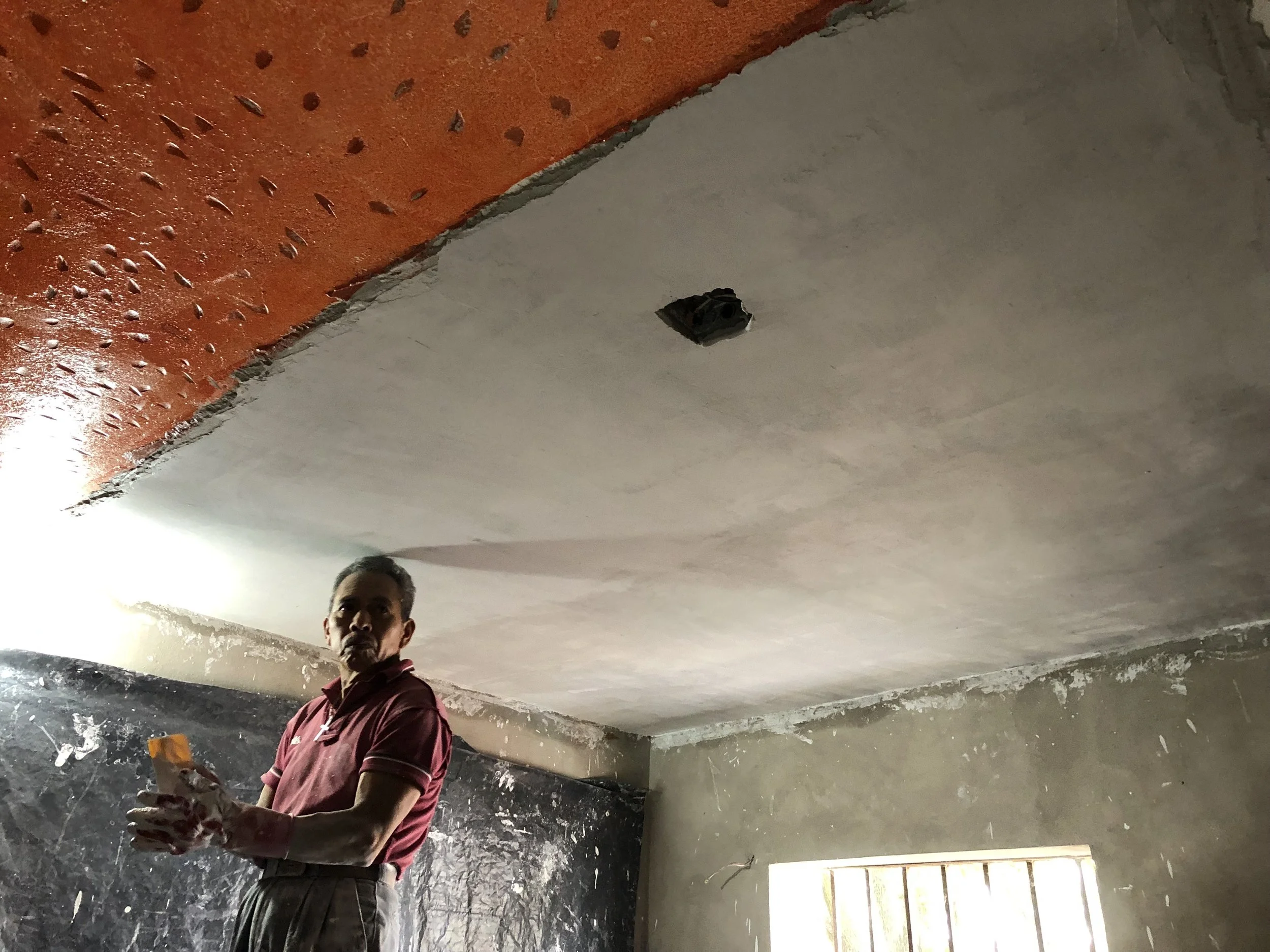 Continuamos trabajos de aplanado yeso en plafones zona de recamara secundaria.